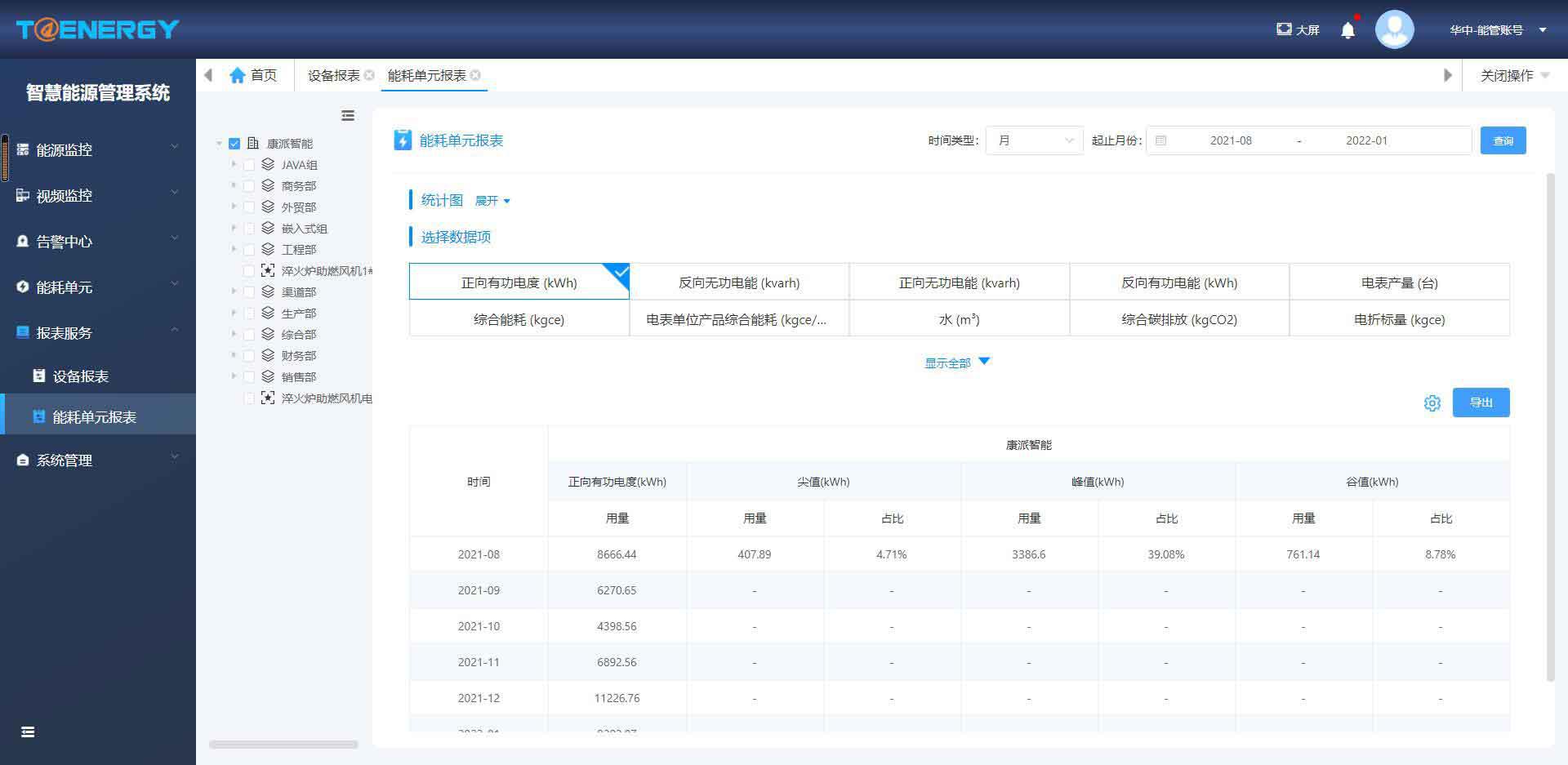 報表包含有日報表、月報表和年報表。通過多樣化的報表服務(wù)滿足生產(chǎn)現(xiàn)場的多種多樣需求。報表設(shè)有打印功能,可定時自動打印或觸發(fā)條件打印,并可導(dǎo)出到excel表格中,顯著減少抄表工作的人力成本,提高用戶的經(jīng)濟(jì)效益。展示單個或者多個能耗單元的多個用量數(shù)據(jù)項(xiàng)并在特定時間段內(nèi)計算其相關(guān)的數(shù)據(jù)項(xiàng)實(shí)時值。
