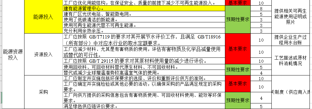 其中在綠色工廠申報(bào)的一級標(biāo)準(zhǔn)中有能源資源投入這一方面的內(nèi)容,包含有建設(shè)能源管理中心這一項(xiàng)。對于建設(shè)有能源管理中心的企業(yè),在申報(bào)綠色工廠時會有加分。
