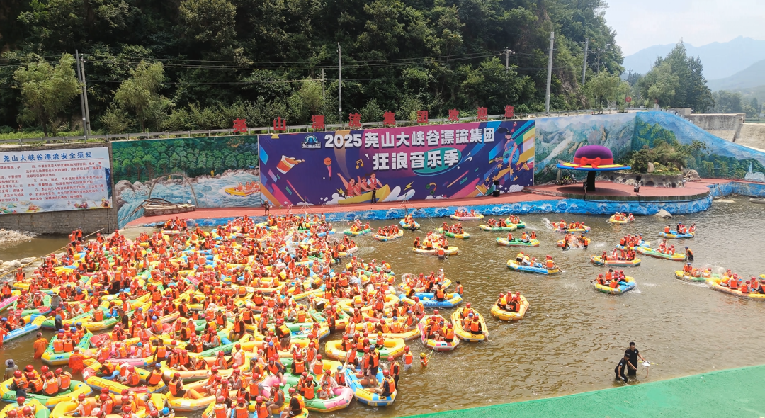抵達景區后,先以一頓豐盛的午餐 “蓄能”,隨后重頭戲登場:堯山大峽谷漂流,我們來啦!