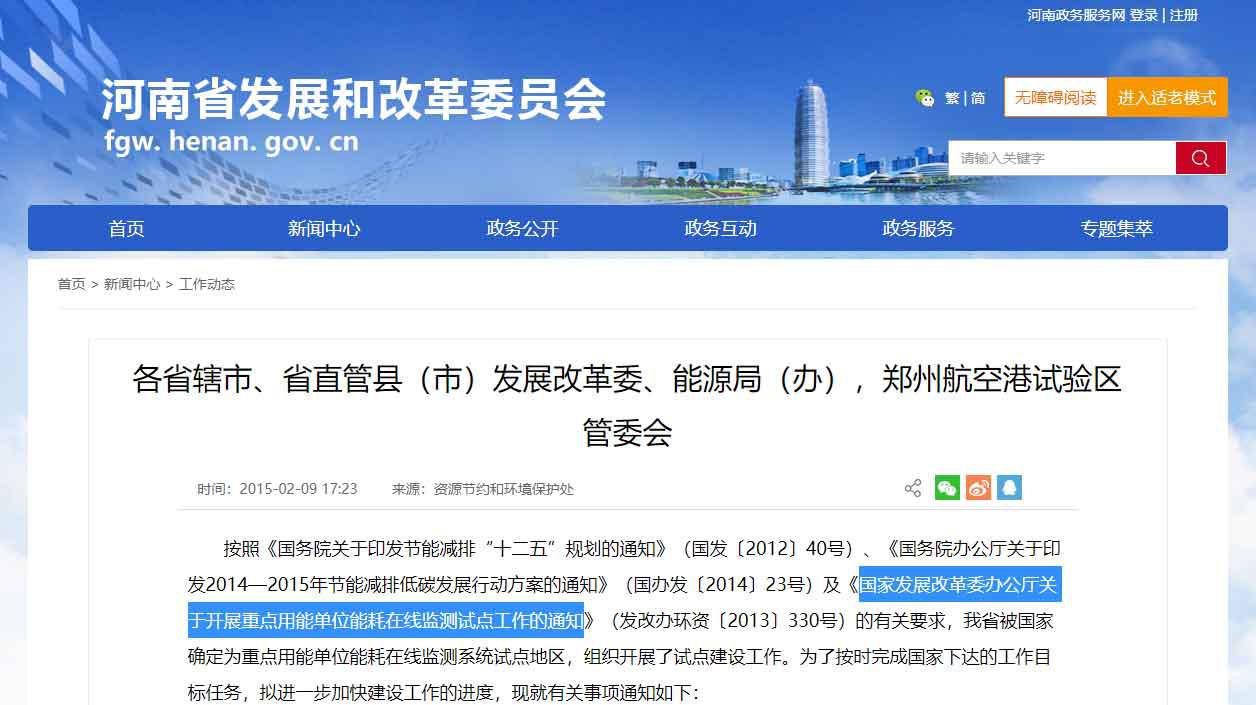 根據國家發展改革委、質檢總局聯合印發的《重點用能單位能耗在線監測系統推廣建設工作方案》及《國家發展改革委辦公廳關于開展重點用能單位能耗在線監測試點工作的通知》(發改辦環資〔2013〕330號)的有關要求,加快河南省重點用能單位能耗在線監測系統平臺建設,推進重點用能單位完善能源計量體系、提升能源管理精細化水平。